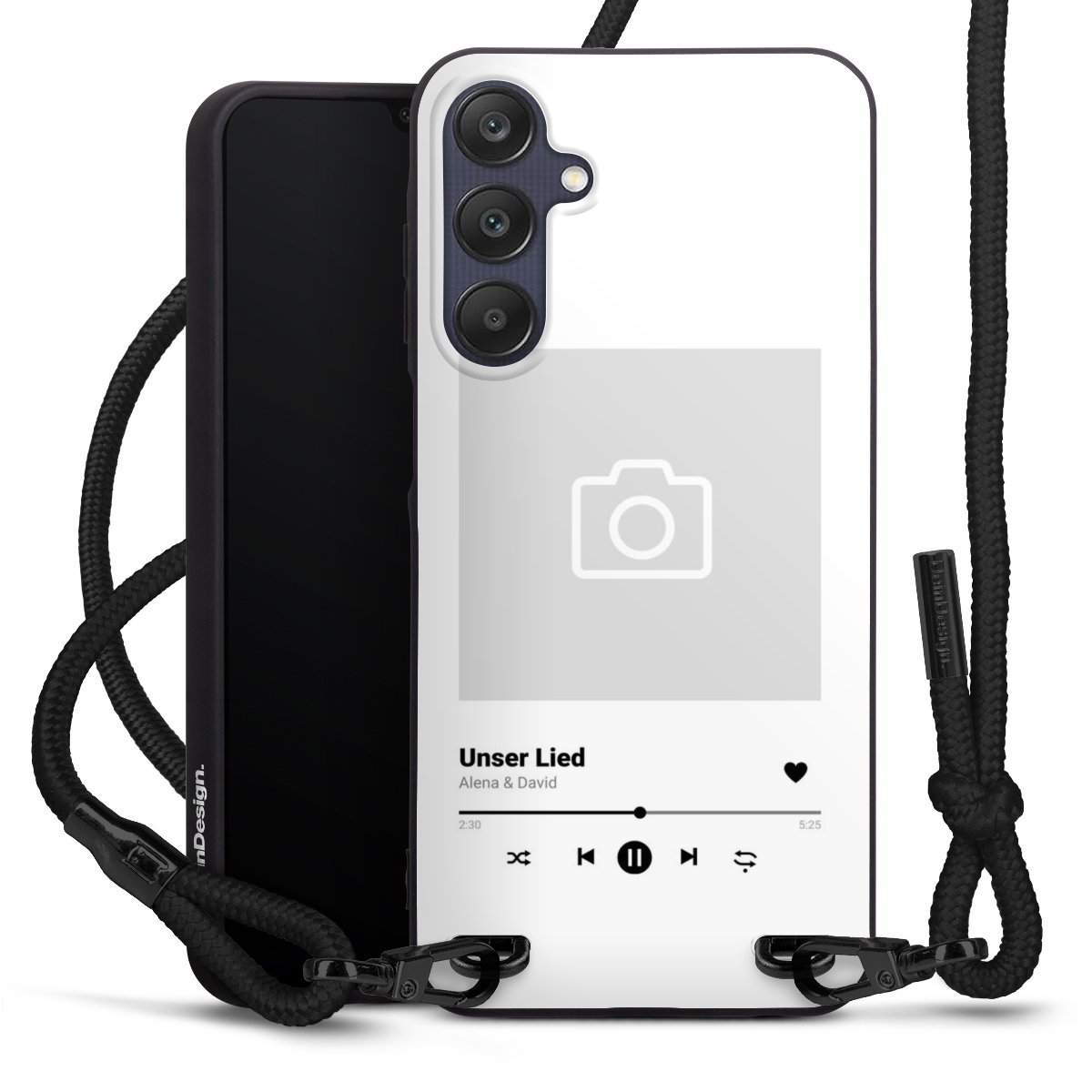We use the solid direct print process for this phone case, which is why the print area only covers the back and the edge remains unprinted. The case to wear around your neck can be ordered unprinted, fully printed, or partially printed. For your design, either choose one of our exclusive shop motifs or get creative and create your own design, for example with photos and overlays. Design your own personal trend accessory and make an individual statement on the streets!