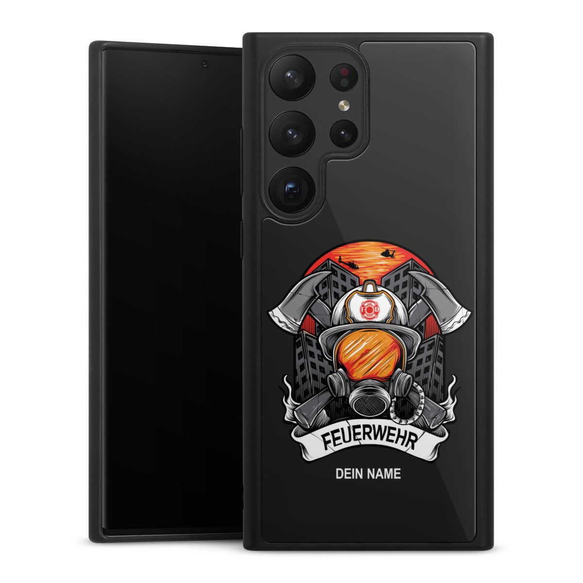 We print your design on the back of the glass inlay and then connect it firmly to the silicone case ,so that nothing sticks out and everything looks like it was cast from one piece. In addition, the sturdy glass element is protected from scratches by an additional coating and ensures a slight reflection on the shiny print image.