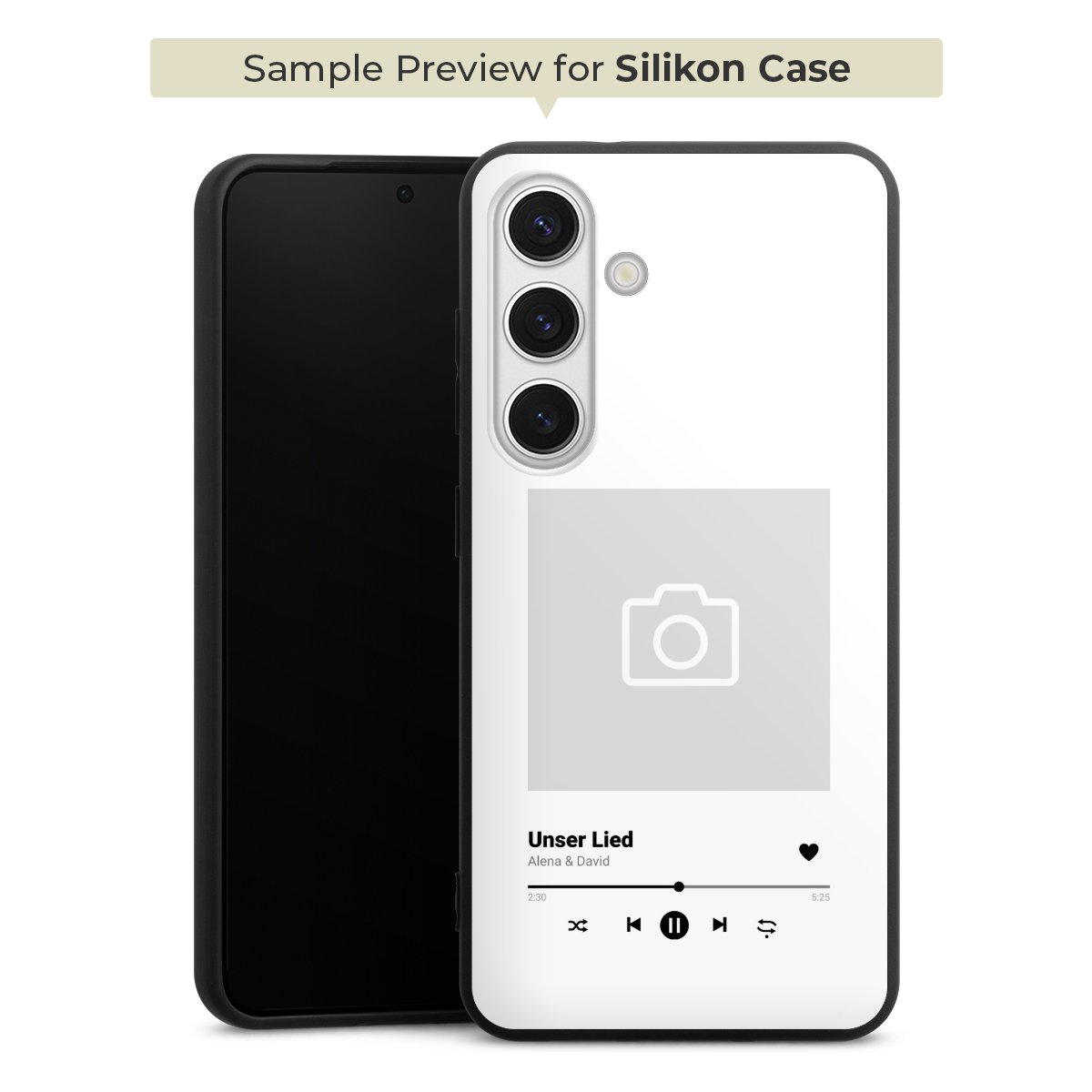 For the Silicone Premium Case Line we use the solid direct printing process. The print area covers the back, the edge remains unprinted. The mobile phone case can be ordered unprinted, fully printed, or partially printed. For your design, either choose one of our exclusive shop motifs or get creative and create your own design, for example with photos and overlays.