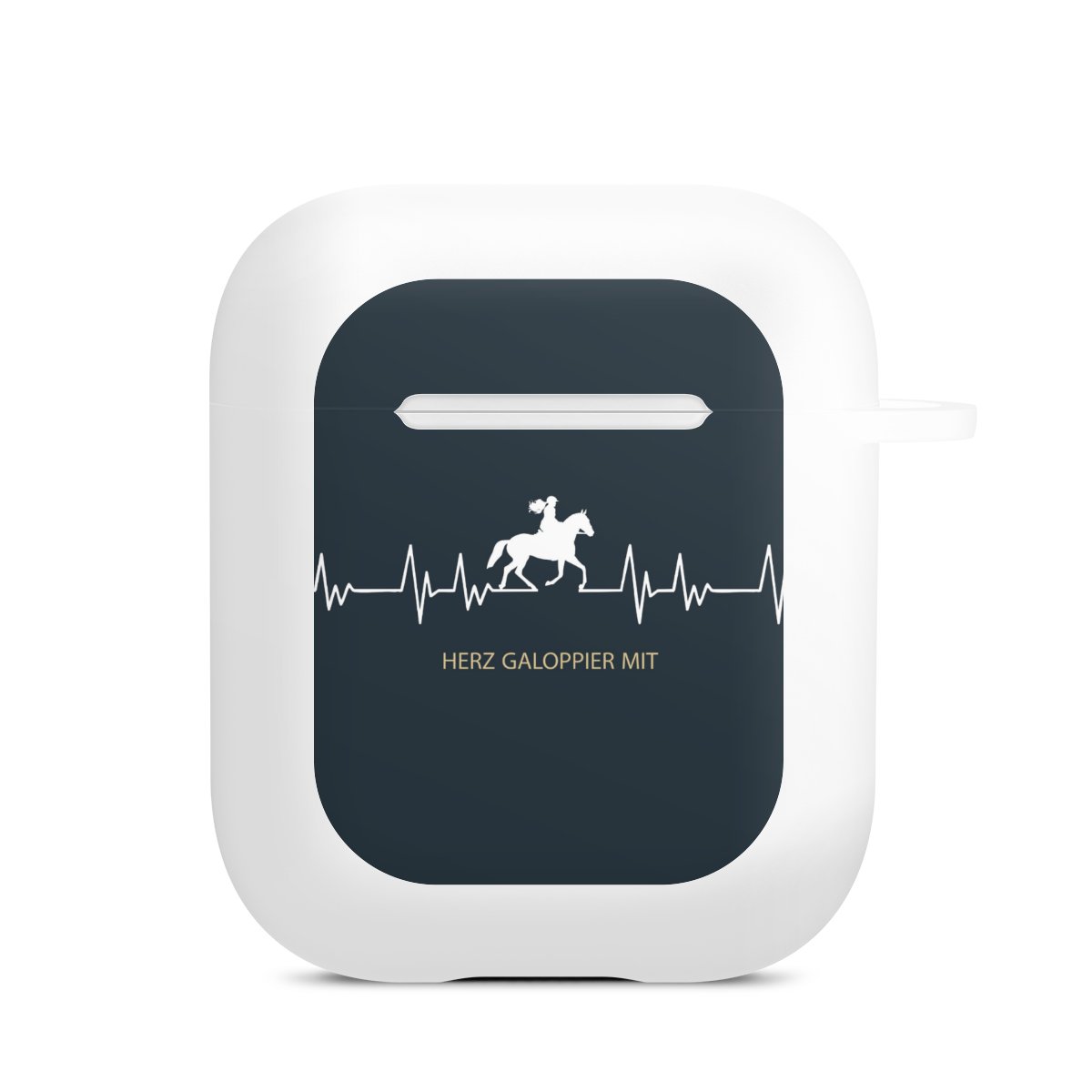 The AirPods Case is your handy and safe storage for your AirPods or AirPods Pro. Thanks to the attached snap hook you can easily add the AirPods Case to your phone necklace, keychain or bag. The wireless charging functionality can be still used at any time. The case is made from TPU, a very long lasting and shatterproof material. The case is available in black and white. The best part about the case: you can customize the frontside with your own designs or one of our pre-made prints!
