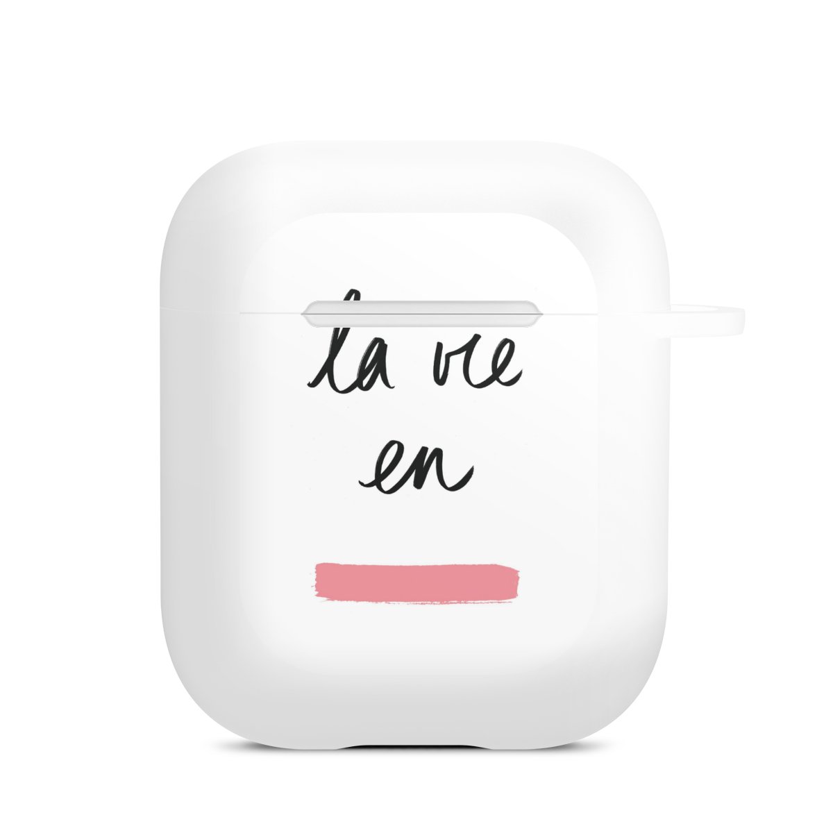 The AirPods Case is your handy and safe storage for your AirPods or AirPods Pro. Thanks to the attached snap hook you can easily add the AirPods Case to your phone necklace, keychain or bag. The wireless charging functionality can be still used at any time. The case is made from TPU, a very long lasting and shatterproof material. The case is available in black and white. The best part about the case: you can customize the frontside with your own designs or one of our pre-made prints!