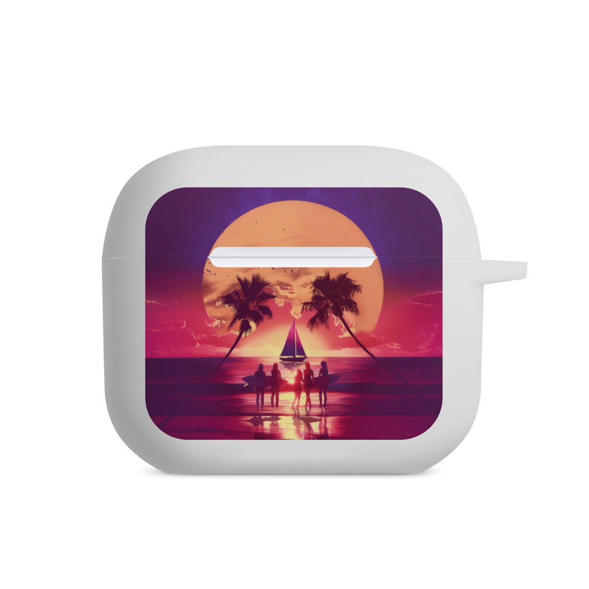 The AirPods Case is your handy and safe storage for your AirPods or AirPods Pro. Thanks to the attached snap hook you can easily add the AirPods Case to your phone necklace, keychain or bag. The wireless charging functionality can be still used at any time. The case is made from TPU, a very long lasting and shatterproof material. The case is available in black and white. The best part about the case: you can customize the frontside with your own designs or one of our pre-made prints!