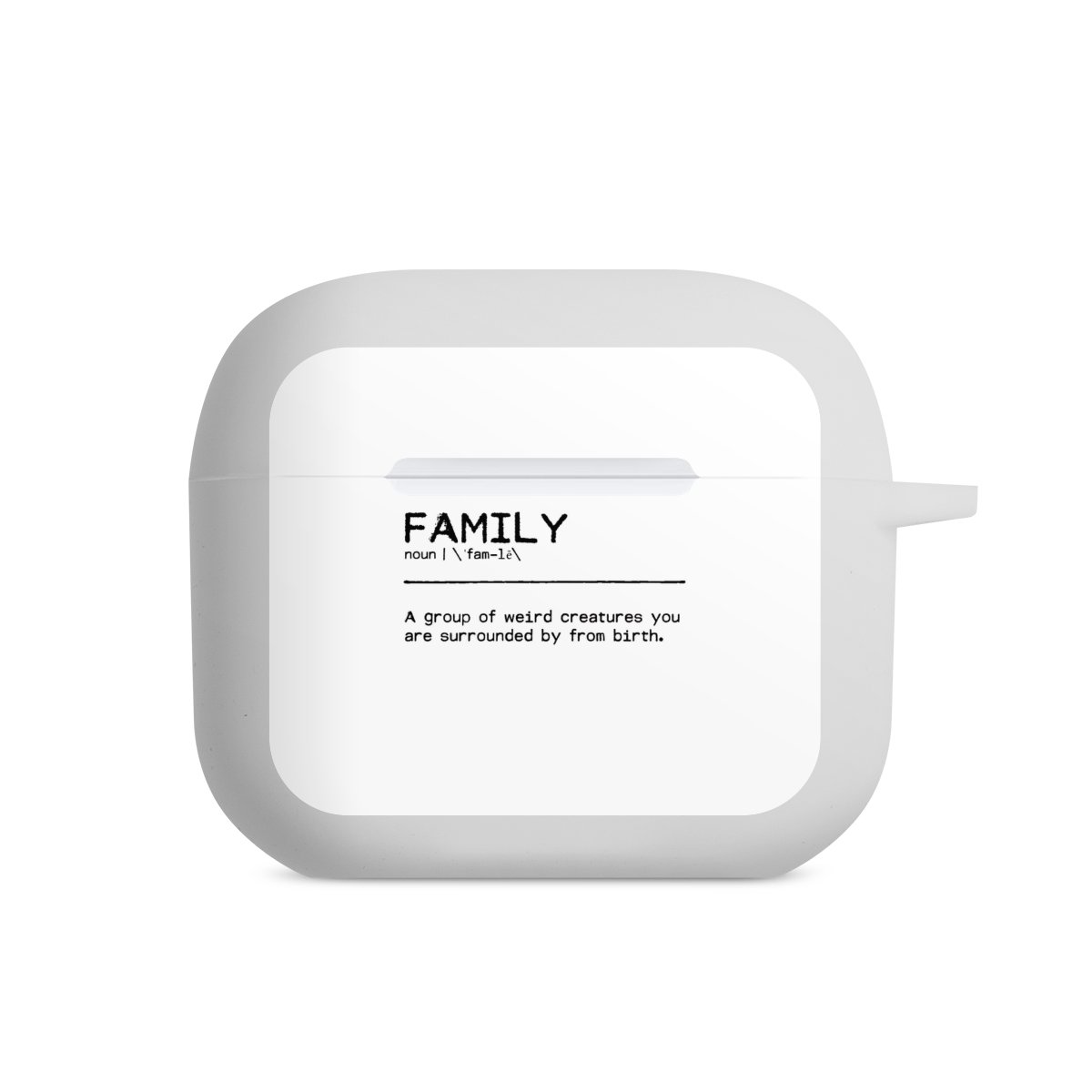 The AirPods Case is your handy and safe storage for your AirPods or AirPods Pro. Thanks to the attached snap hook you can easily add the AirPods Case to your phone necklace, keychain or bag. The wireless charging functionality can be still used at any time. The case is made from TPU, a very long lasting and shatterproof material. The case is available in black and white. The best part about the case: you can customize the frontside with your own designs or one of our pre-made prints!
