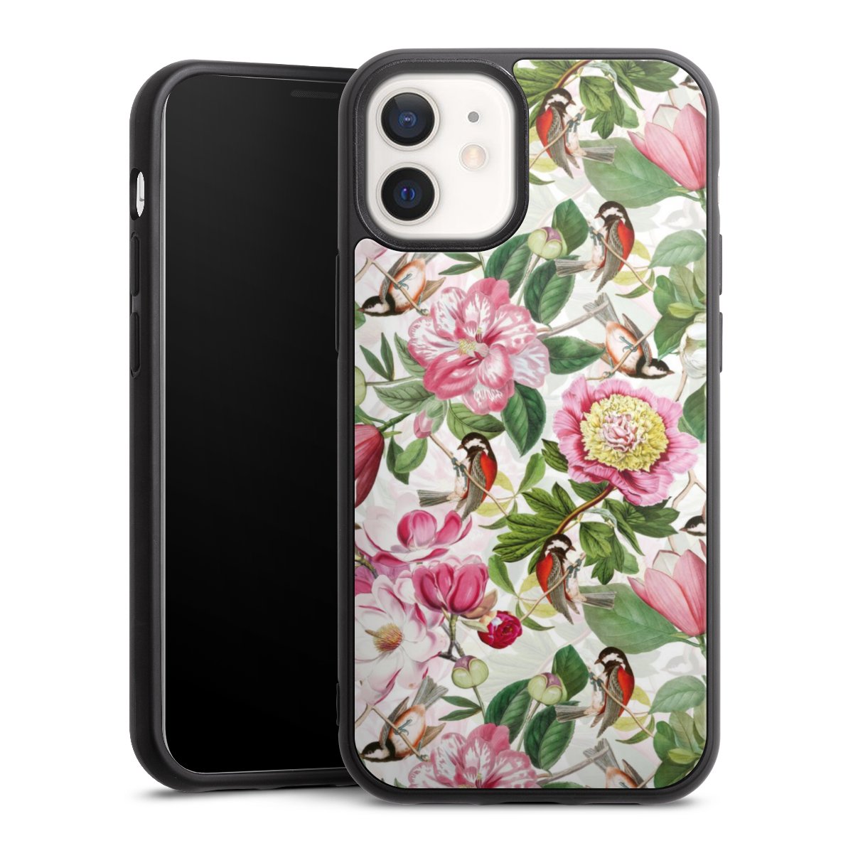 We print your design on the back of the glass inlay and then connect it firmly to the silicone case ,so that nothing sticks out and everything looks like it was cast from one piece. In addition, the sturdy glass element is protected from scratches by an additional coating and ensures a slight reflection on the shiny print image.