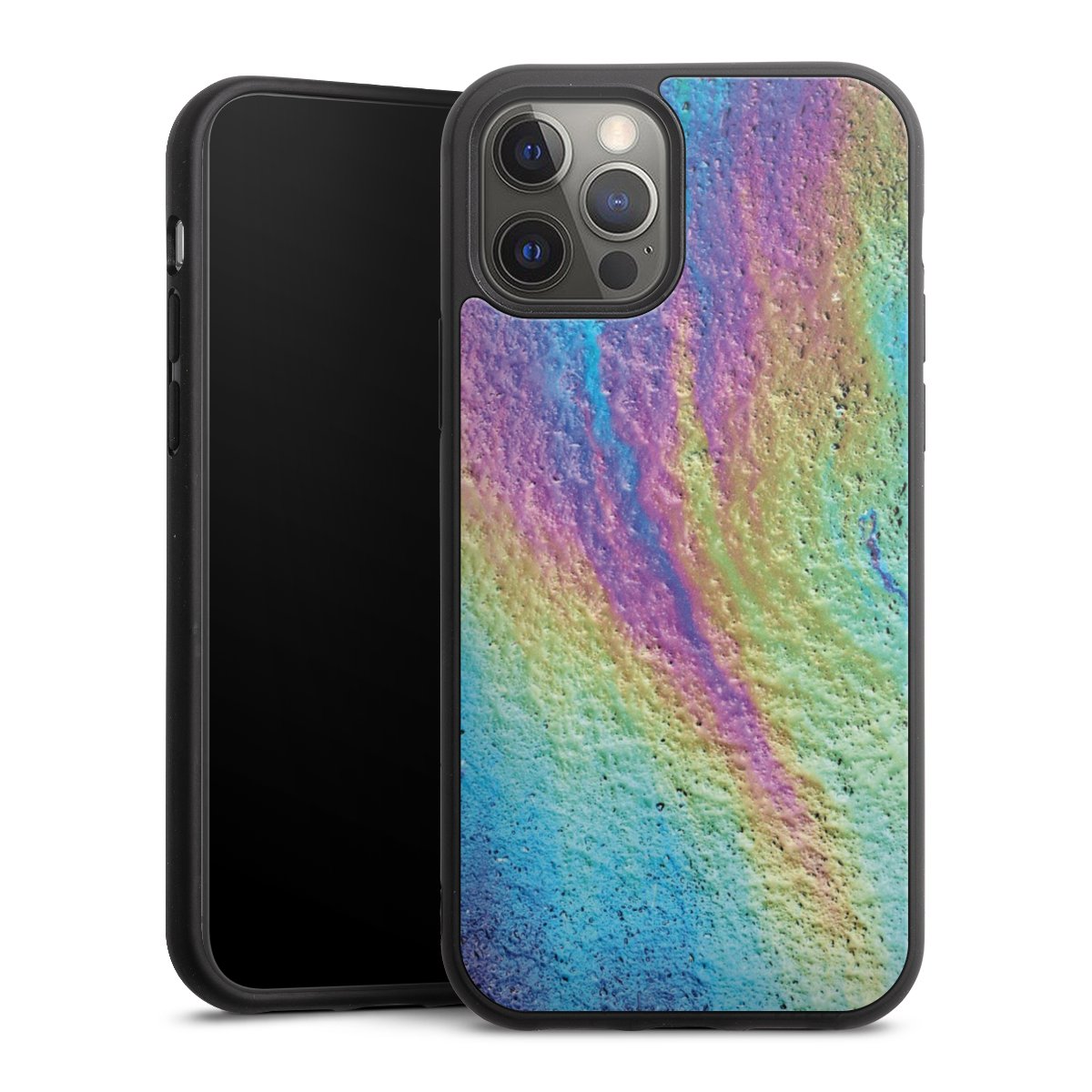We print your design on the back of the glass inlay and then connect it firmly to the silicone case ,so that nothing sticks out and everything looks like it was cast from one piece. In addition, the sturdy glass element is protected from scratches by an additional coating and ensures a slight reflection on the shiny print image.