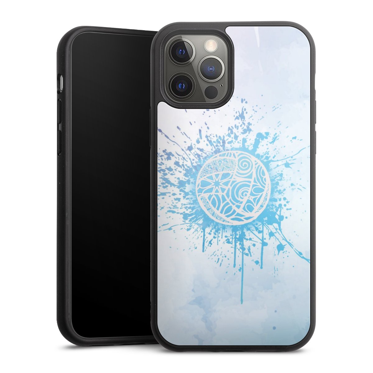 We print your design on the back of the glass inlay and then connect it firmly to the silicone case ,so that nothing sticks out and everything looks like it was cast from one piece. In addition, the sturdy glass element is protected from scratches by an additional coating and ensures a slight reflection on the shiny print image.