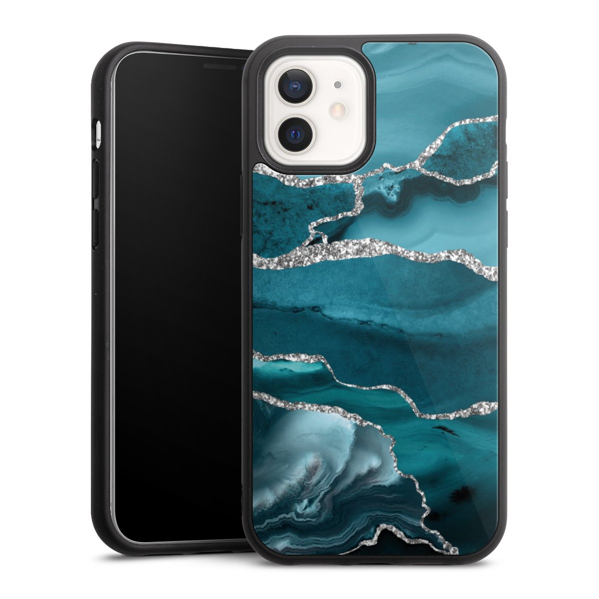 We print your design on the back of the glass inlay and then connect it firmly to the silicone case ,so that nothing sticks out and everything looks like it was cast from one piece. In addition, the sturdy glass element is protected from scratches by an additional coating and ensures a slight reflection on the shiny print image.