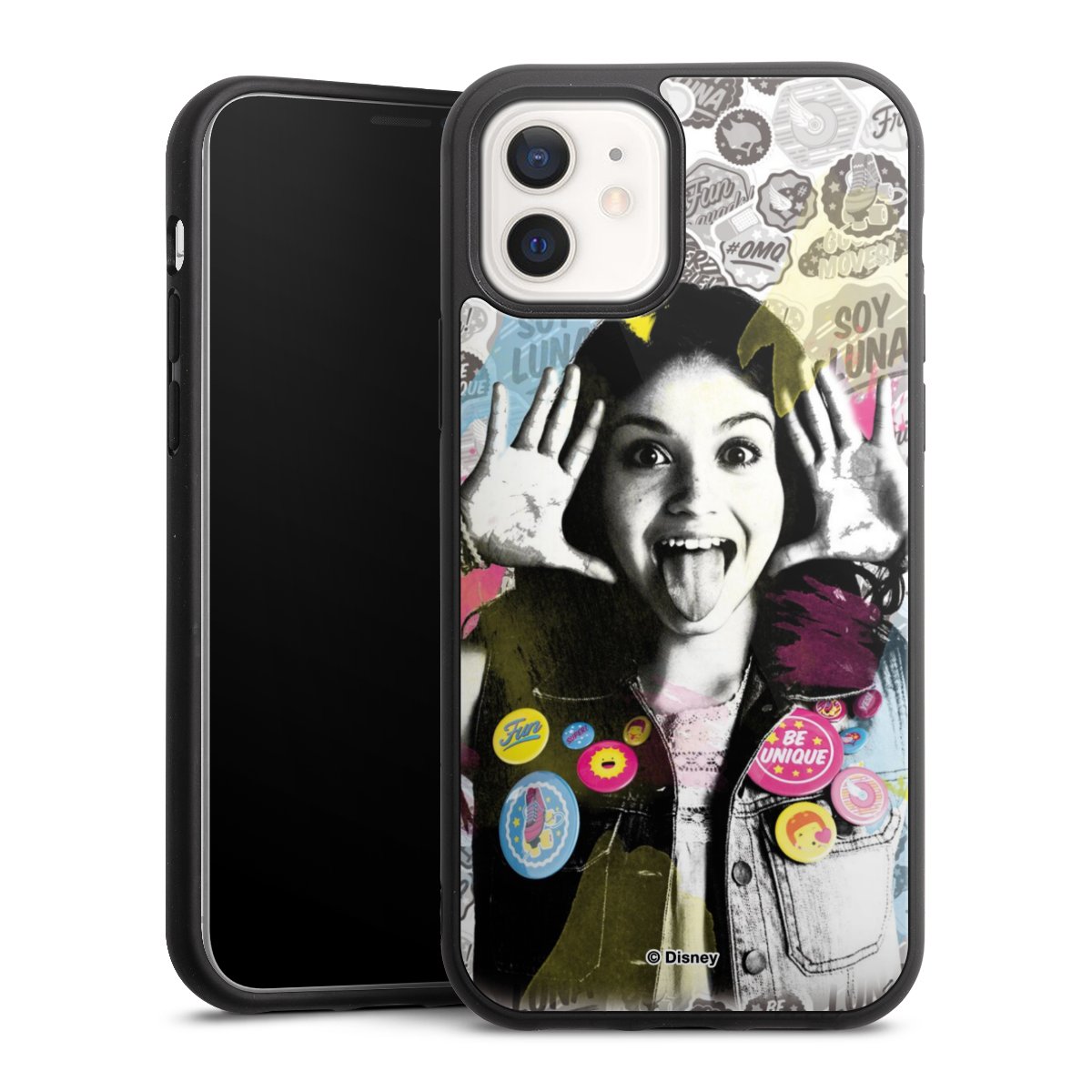 We print your design on the back of the glass inlay and then connect it firmly to the silicone case ,so that nothing sticks out and everything looks like it was cast from one piece. In addition, the sturdy glass element is protected from scratches by an additional coating and ensures a slight reflection on the shiny print image.