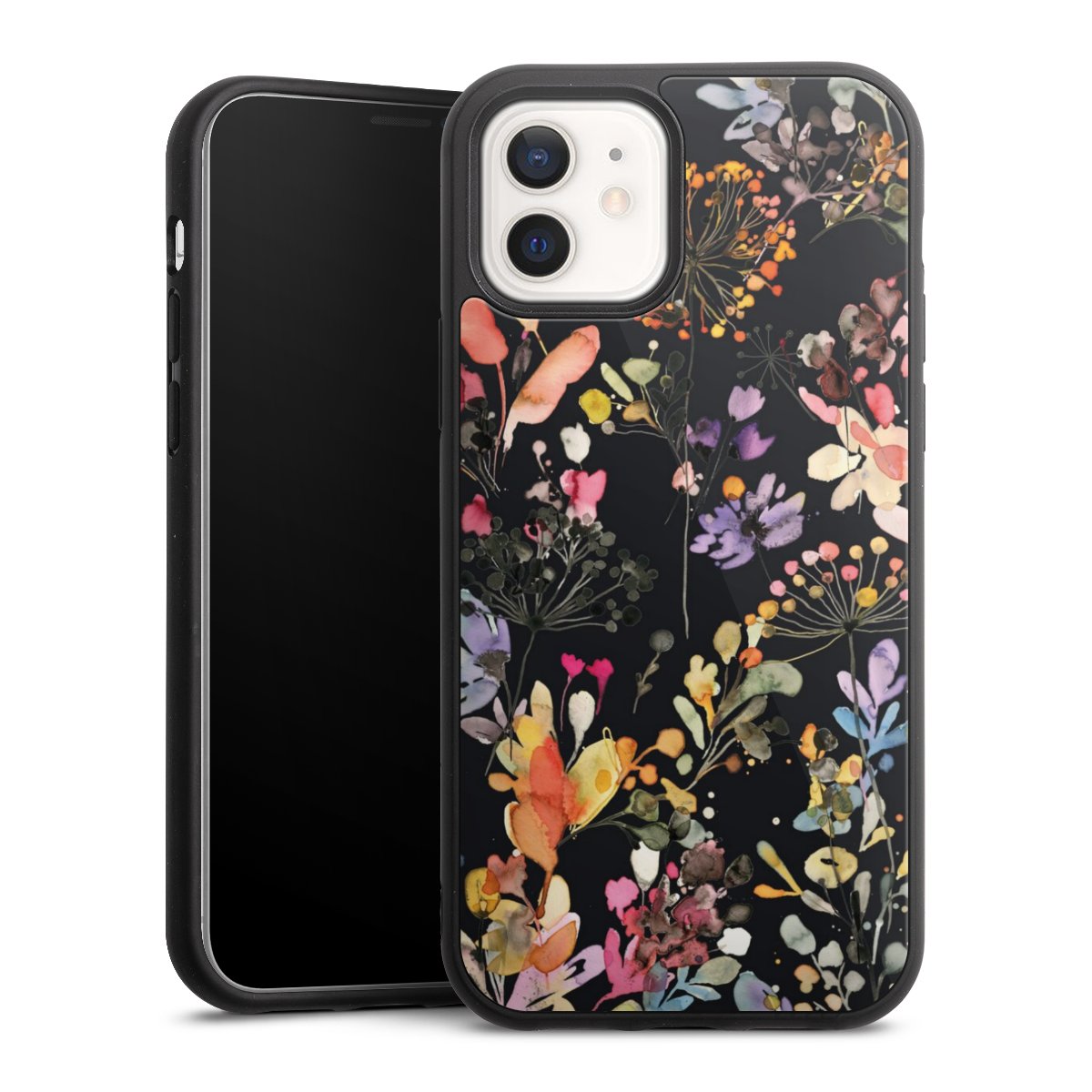 We print your design on the back of the glass inlay and then connect it firmly to the silicone case ,so that nothing sticks out and everything looks like it was cast from one piece. In addition, the sturdy glass element is protected from scratches by an additional coating and ensures a slight reflection on the shiny print image.
