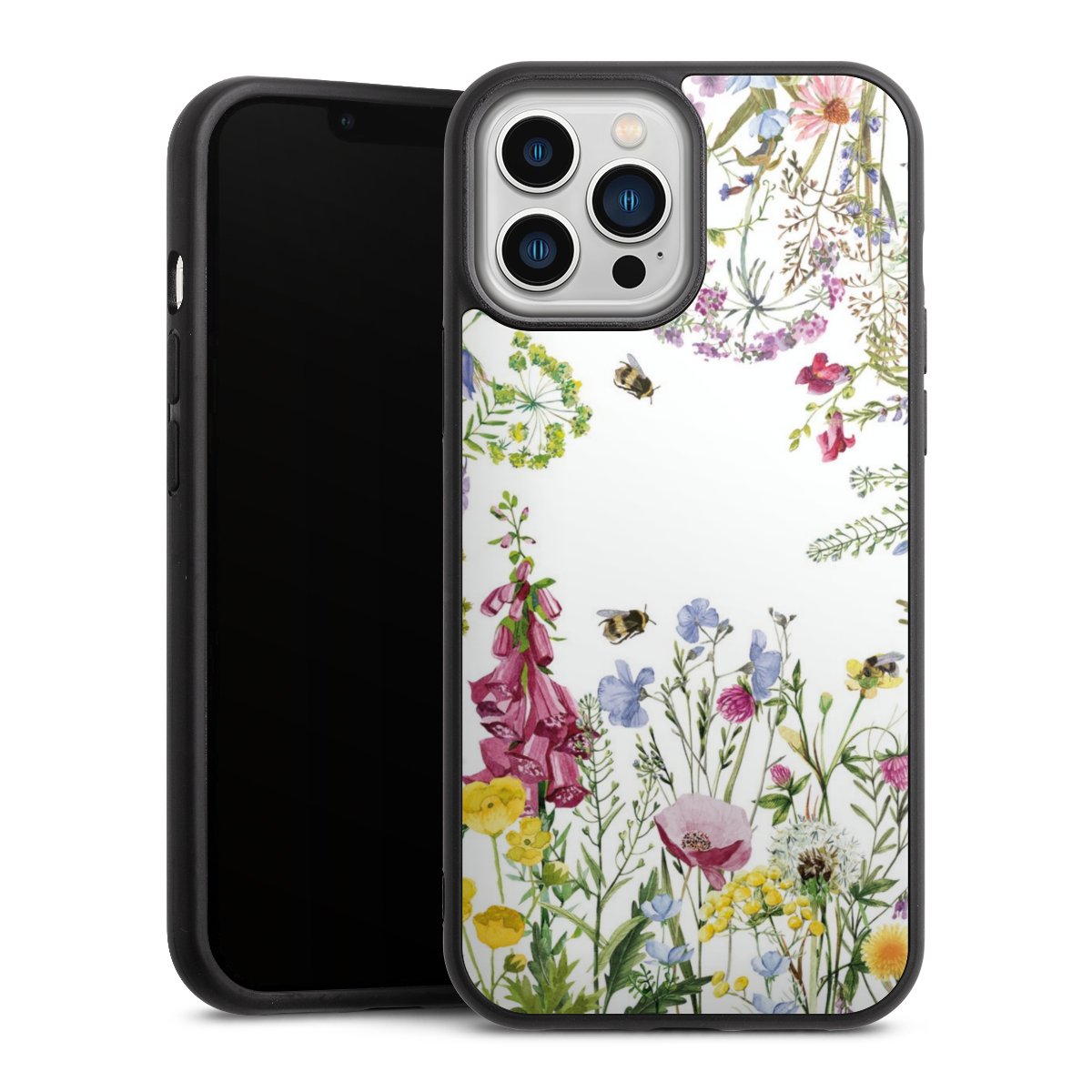 We print your design on the back of the glass inlay and then connect it firmly to the silicone case ,so that nothing sticks out and everything looks like it was cast from one piece. In addition, the sturdy glass element is protected from scratches by an additional coating and ensures a slight reflection on the shiny print image.