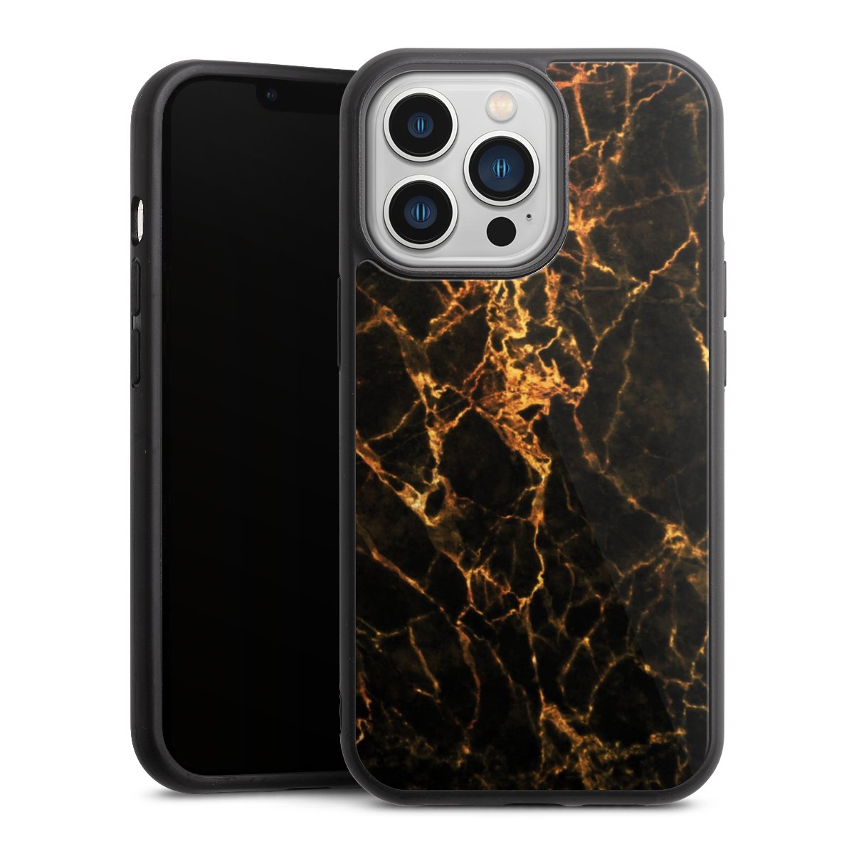 We print your design on the back of the glass inlay and then connect it firmly to the silicone case ,so that nothing sticks out and everything looks like it was cast from one piece. In addition, the sturdy glass element is protected from scratches by an additional coating and ensures a slight reflection on the shiny print image.