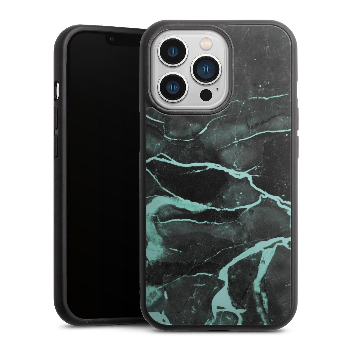 We print your design on the back of the glass inlay and then connect it firmly to the silicone case ,so that nothing sticks out and everything looks like it was cast from one piece. In addition, the sturdy glass element is protected from scratches by an additional coating and ensures a slight reflection on the shiny print image.