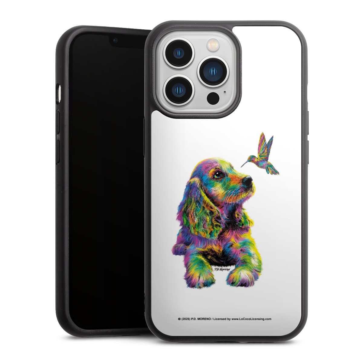 We print your design on the back of the glass inlay and then connect it firmly to the silicone case ,so that nothing sticks out and everything looks like it was cast from one piece. In addition, the sturdy glass element is protected from scratches by an additional coating and ensures a slight reflection on the shiny print image.