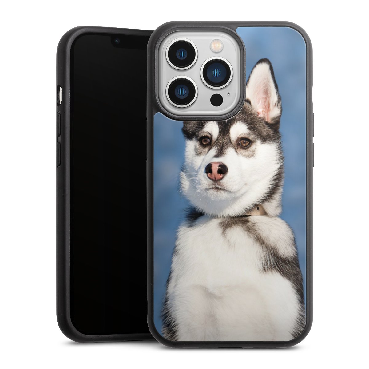 We print your design on the back of the glass inlay and then connect it firmly to the silicone case ,so that nothing sticks out and everything looks like it was cast from one piece. In addition, the sturdy glass element is protected from scratches by an additional coating and ensures a slight reflection on the shiny print image.