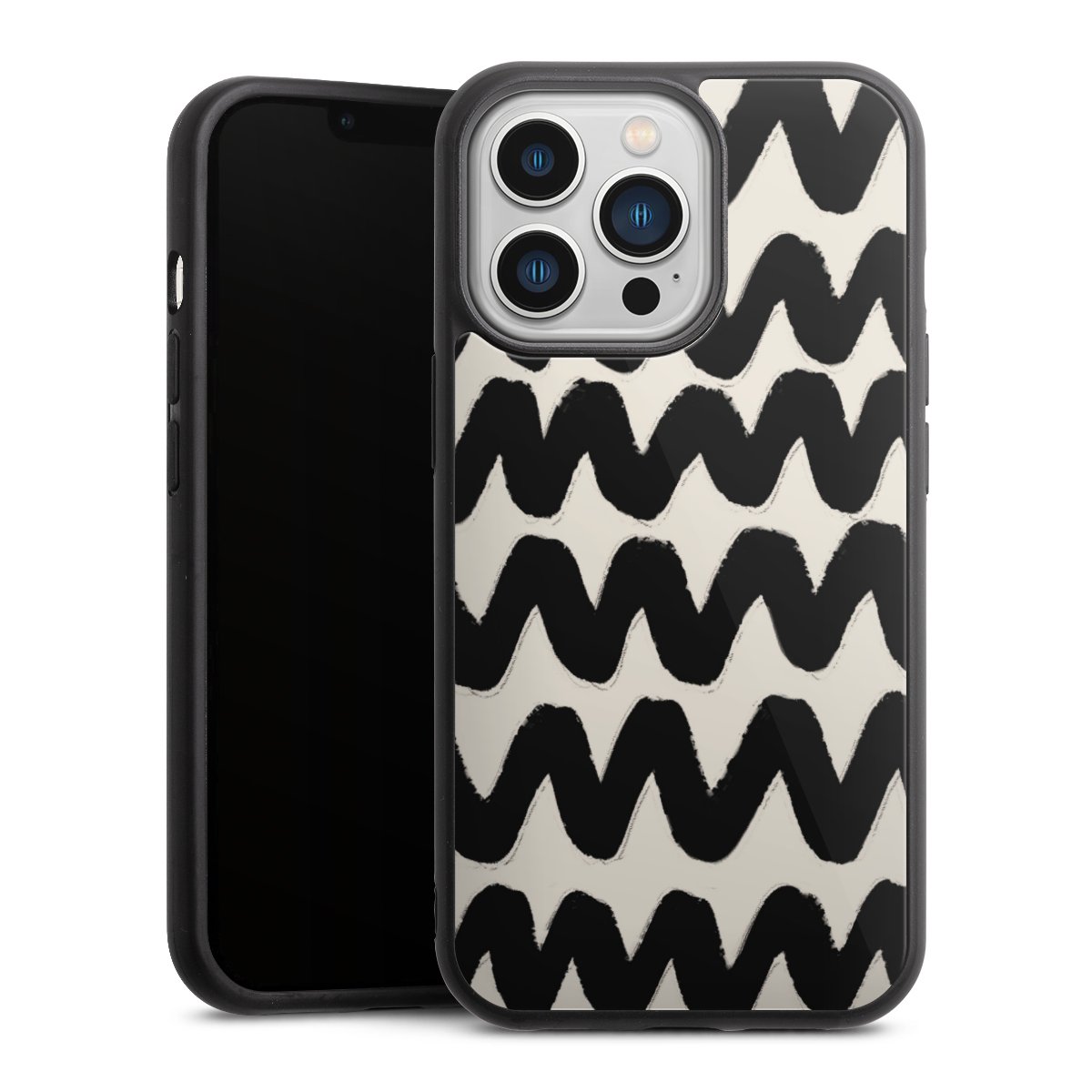 We print your design on the back of the glass inlay and then connect it firmly to the silicone case ,so that nothing sticks out and everything looks like it was cast from one piece. In addition, the sturdy glass element is protected from scratches by an additional coating and ensures a slight reflection on the shiny print image.