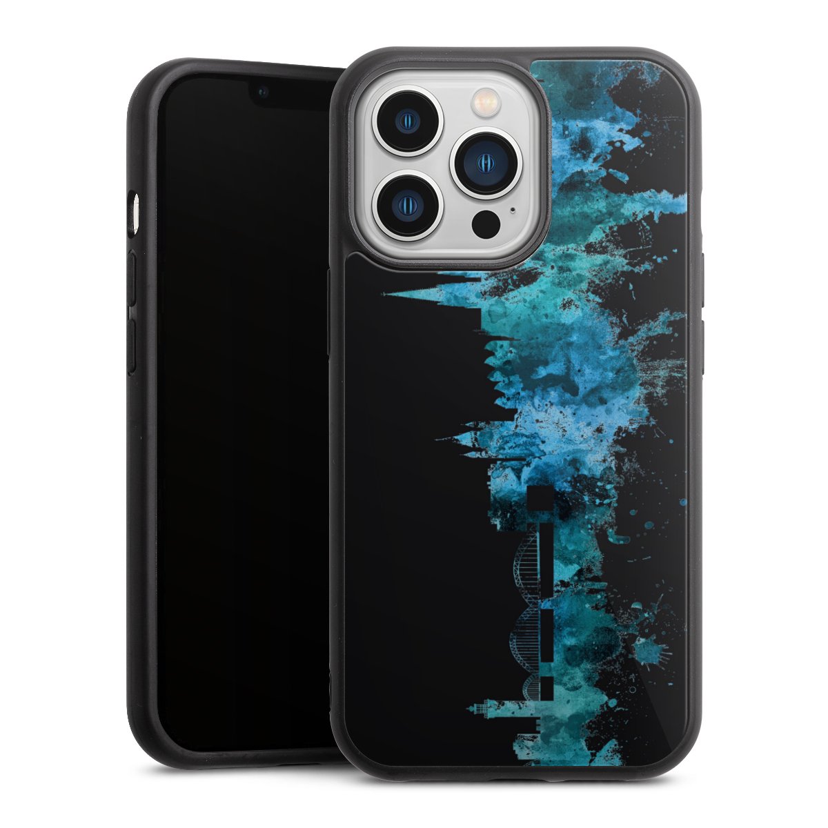 We print your design on the back of the glass inlay and then connect it firmly to the silicone case ,so that nothing sticks out and everything looks like it was cast from one piece. In addition, the sturdy glass element is protected from scratches by an additional coating and ensures a slight reflection on the shiny print image.