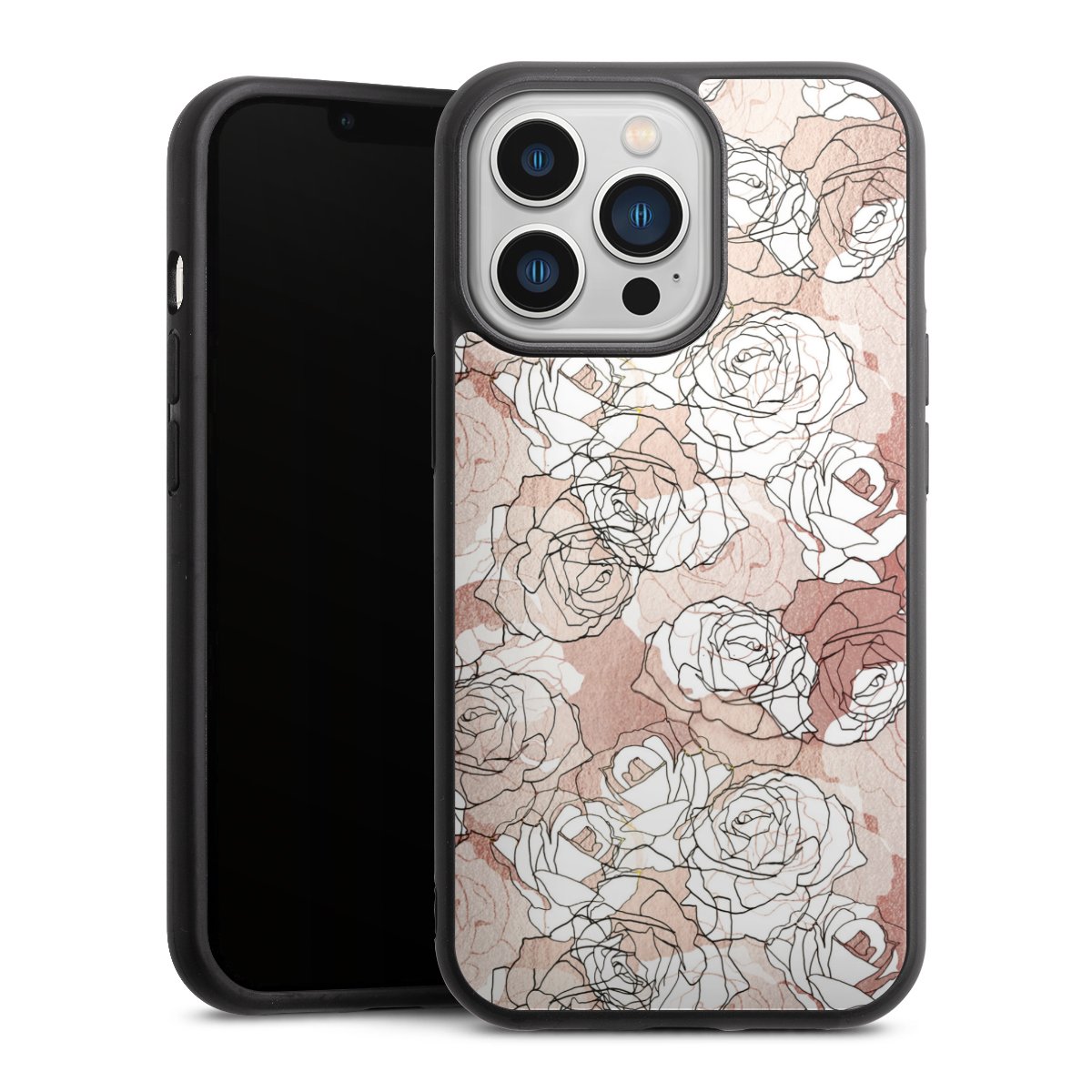 We print your design on the back of the glass inlay and then connect it firmly to the silicone case ,so that nothing sticks out and everything looks like it was cast from one piece. In addition, the sturdy glass element is protected from scratches by an additional coating and ensures a slight reflection on the shiny print image.