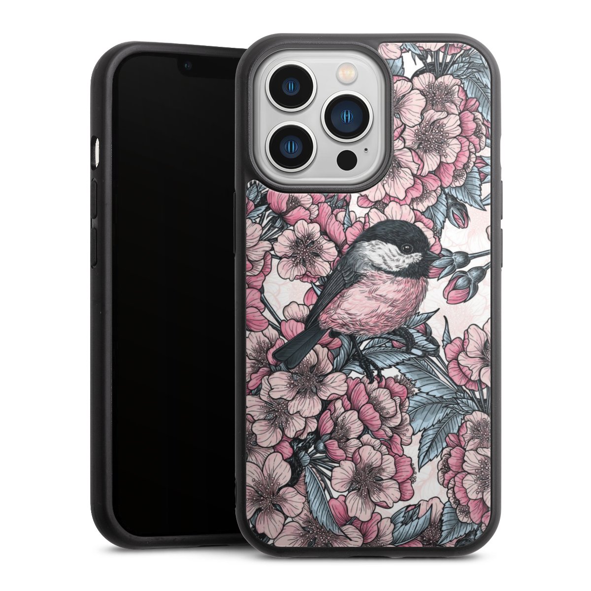 We print your design on the back of the glass inlay and then connect it firmly to the silicone case ,so that nothing sticks out and everything looks like it was cast from one piece. In addition, the sturdy glass element is protected from scratches by an additional coating and ensures a slight reflection on the shiny print image.
