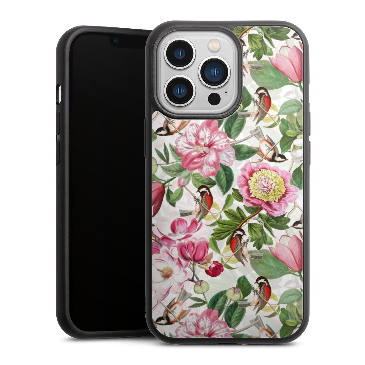 We print your design on the back of the glass inlay and then connect it firmly to the silicone case ,so that nothing sticks out and everything looks like it was cast from one piece. In addition, the sturdy glass element is protected from scratches by an additional coating and ensures a slight reflection on the shiny print image.