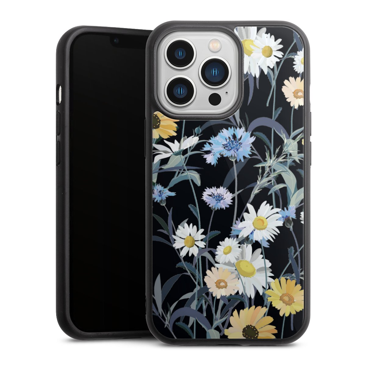 We print your design on the back of the glass inlay and then connect it firmly to the silicone case ,so that nothing sticks out and everything looks like it was cast from one piece. In addition, the sturdy glass element is protected from scratches by an additional coating and ensures a slight reflection on the shiny print image.