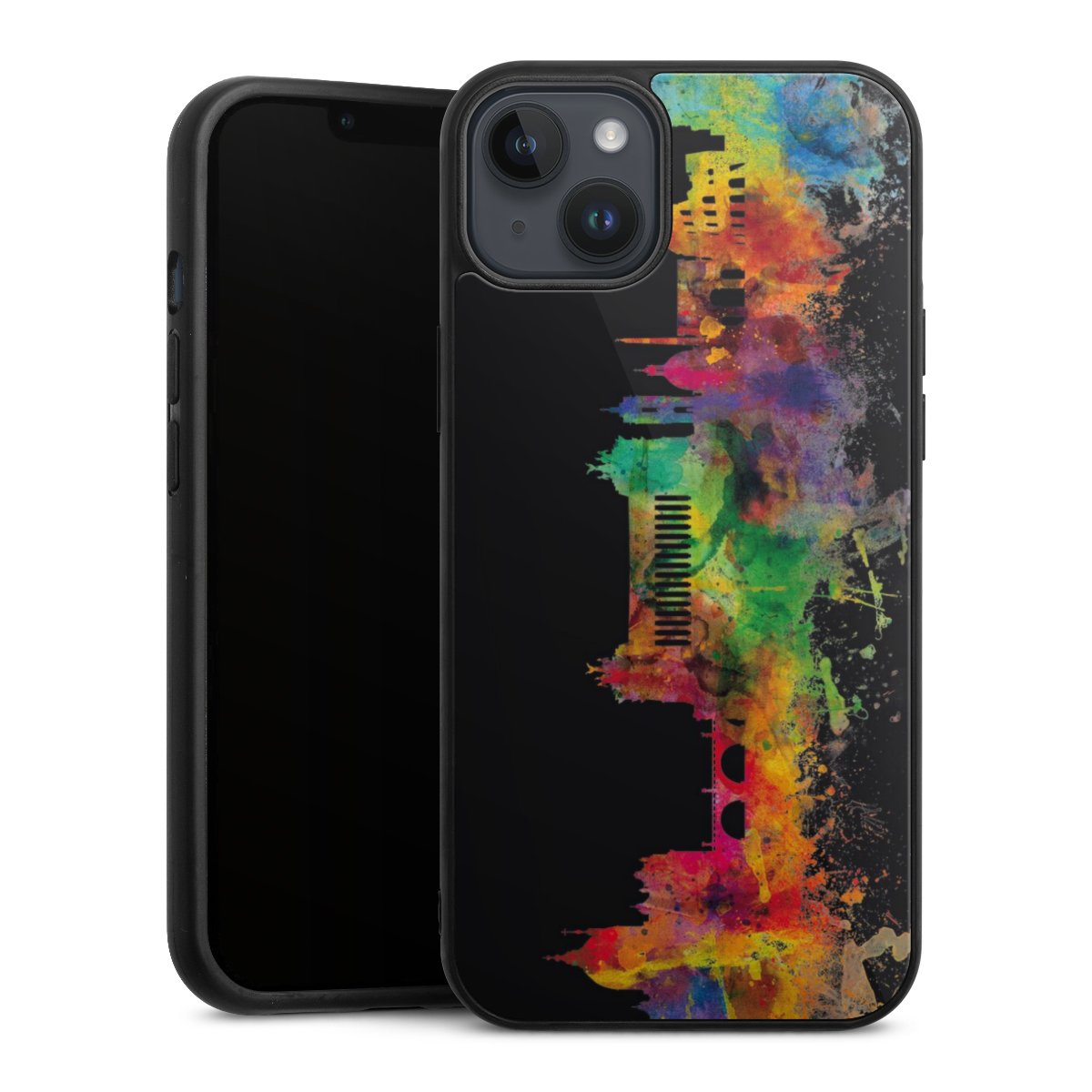We print your design on the back of the glass inlay and then connect it firmly to the silicone case ,so that nothing sticks out and everything looks like it was cast from one piece. In addition, the sturdy glass element is protected from scratches by an additional coating and ensures a slight reflection on the shiny print image.