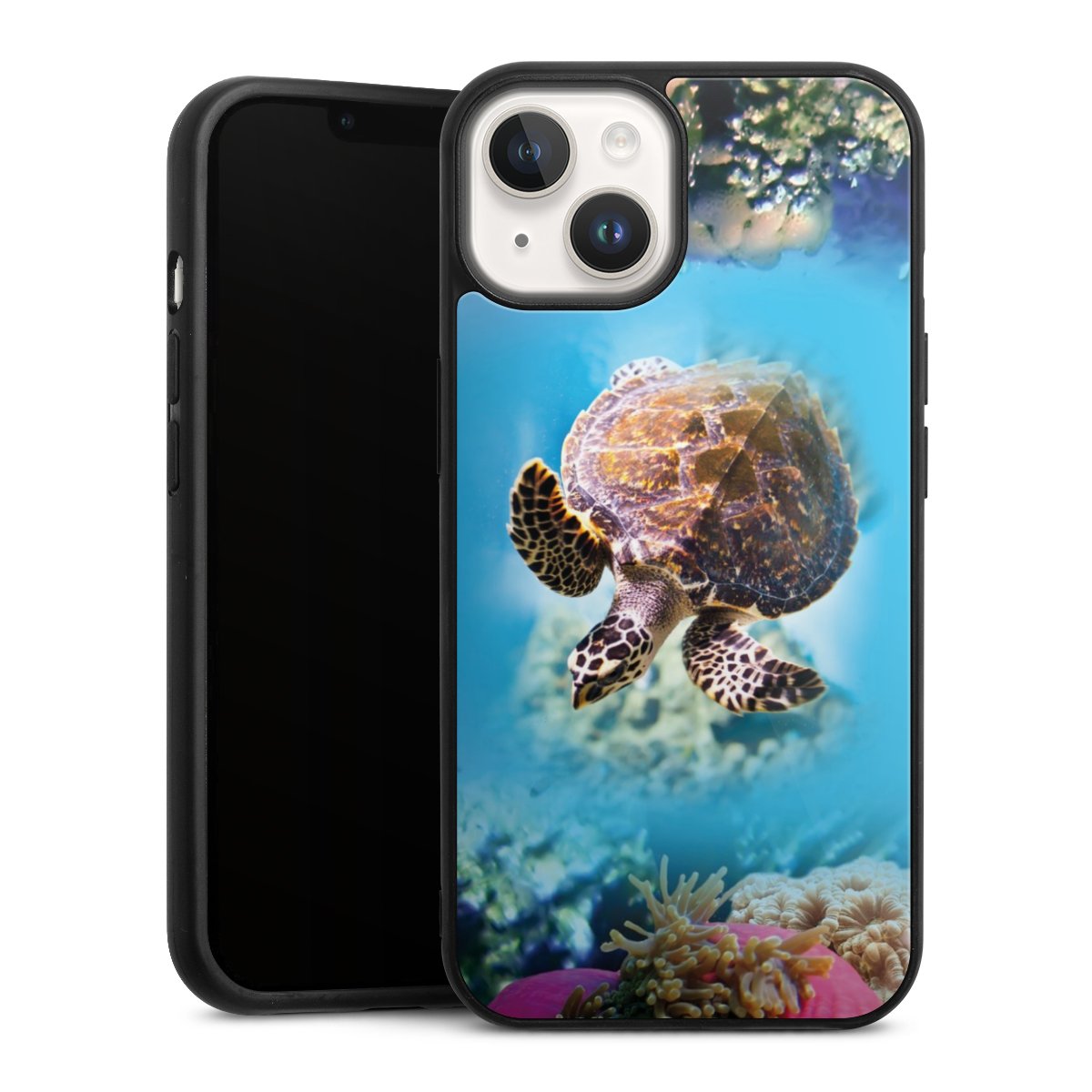 We print your design on the back of the glass inlay and then connect it firmly to the silicone case ,so that nothing sticks out and everything looks like it was cast from one piece. In addition, the sturdy glass element is protected from scratches by an additional coating and ensures a slight reflection on the shiny print image.
