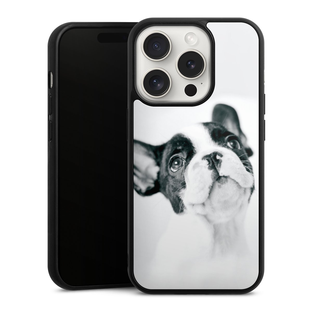 We print your design on the back of the glass inlay and then connect it firmly to the silicone case ,so that nothing sticks out and everything looks like it was cast from one piece. In addition, the sturdy glass element is protected from scratches by an additional coating and ensures a slight reflection on the shiny print image.