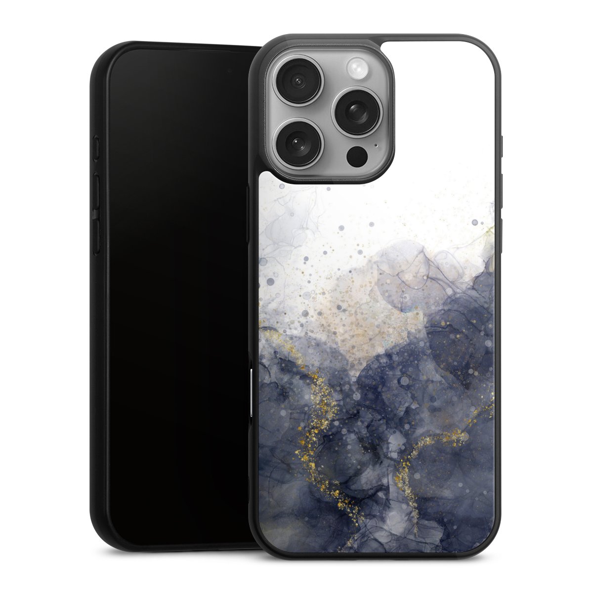 We print your design on the back of the glass inlay and then connect it firmly to the silicone case ,so that nothing sticks out and everything looks like it was cast from one piece. In addition, the sturdy glass element is protected from scratches by an additional coating and ensures a slight reflection on the shiny print image.