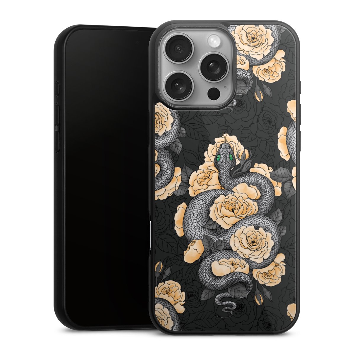 We print your design on the back of the glass inlay and then connect it firmly to the silicone case ,so that nothing sticks out and everything looks like it was cast from one piece. In addition, the sturdy glass element is protected from scratches by an additional coating and ensures a slight reflection on the shiny print image.