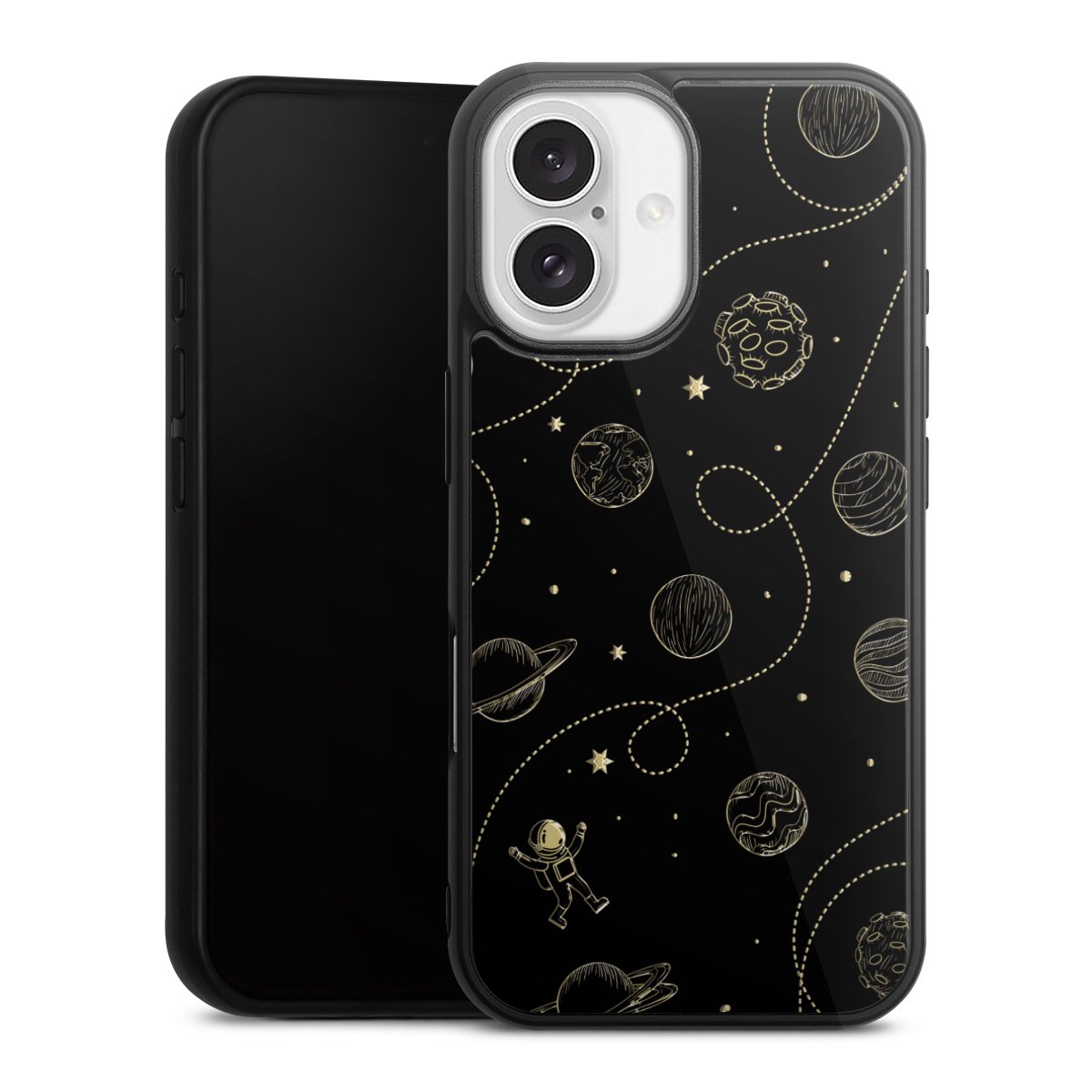 We print your design on the back of the glass inlay and then connect it firmly to the silicone case ,so that nothing sticks out and everything looks like it was cast from one piece. In addition, the sturdy glass element is protected from scratches by an additional coating and ensures a slight reflection on the shiny print image.