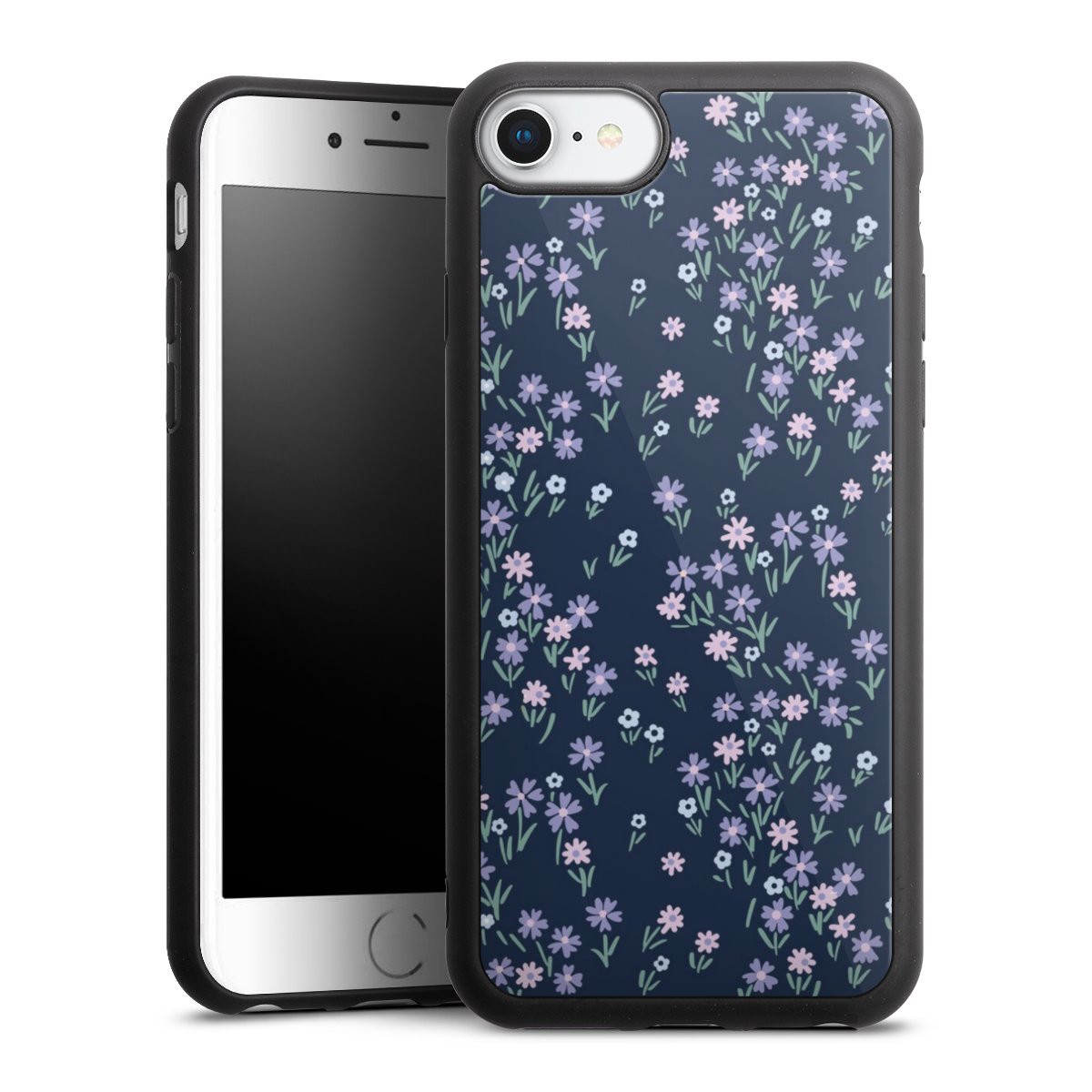 We print your design on the back of the glass inlay and then connect it firmly to the silicone case ,so that nothing sticks out and everything looks like it was cast from one piece. In addition, the sturdy glass element is protected from scratches by an additional coating and ensures a slight reflection on the shiny print image.