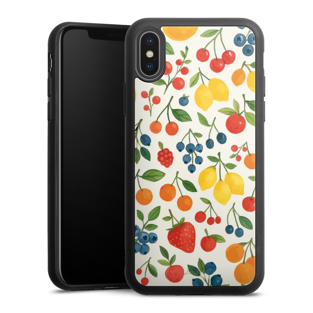 We print your design on the back of the glass inlay and then connect it firmly to the silicone case ,so that nothing sticks out and everything looks like it was cast from one piece. In addition, the sturdy glass element is protected from scratches by an additional coating and ensures a slight reflection on the shiny print image.