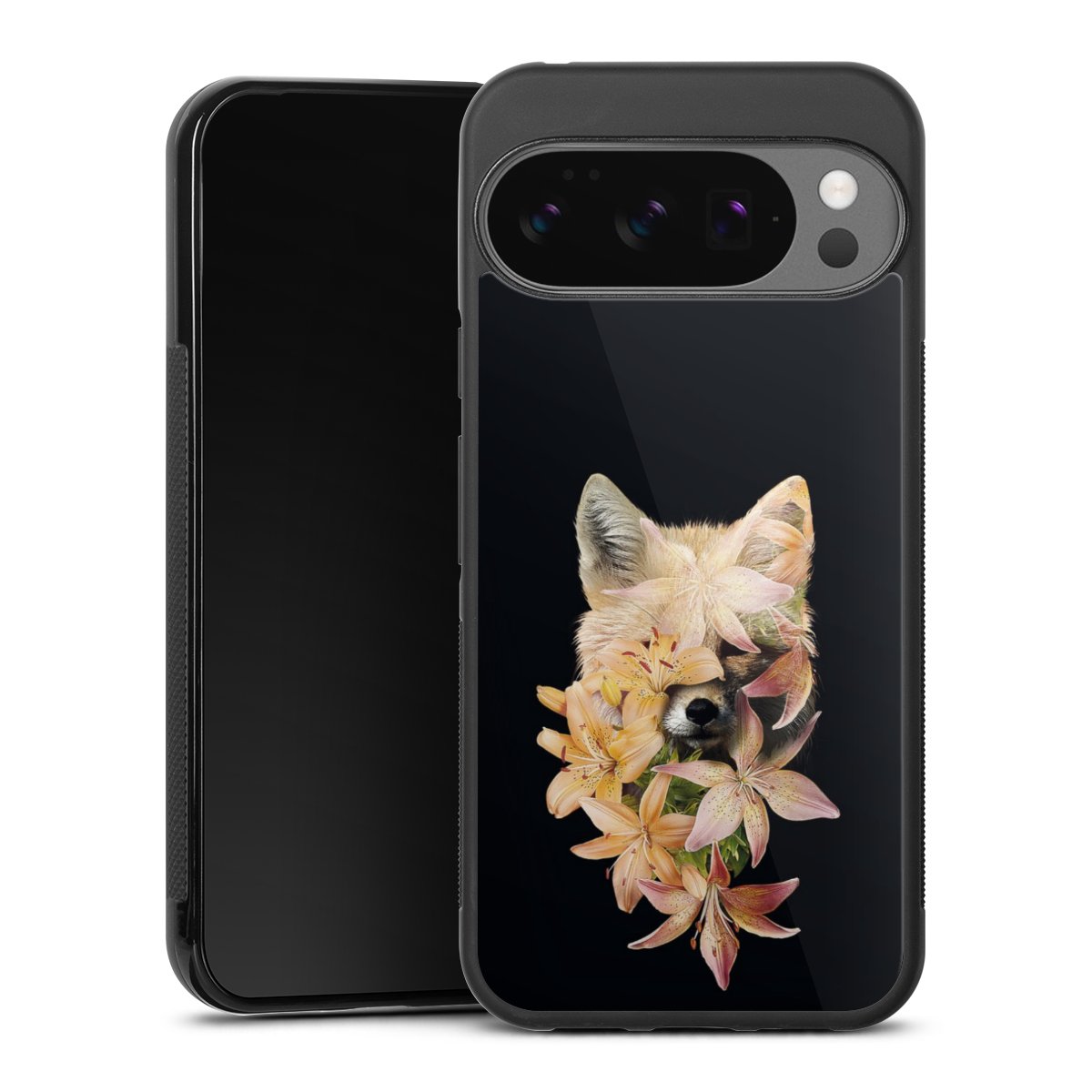 We print your design on the back of the glass inlay and then connect it firmly to the silicone case ,so that nothing sticks out and everything looks like it was cast from one piece. In addition, the sturdy glass element is protected from scratches by an additional coating and ensures a slight reflection on the shiny print image.