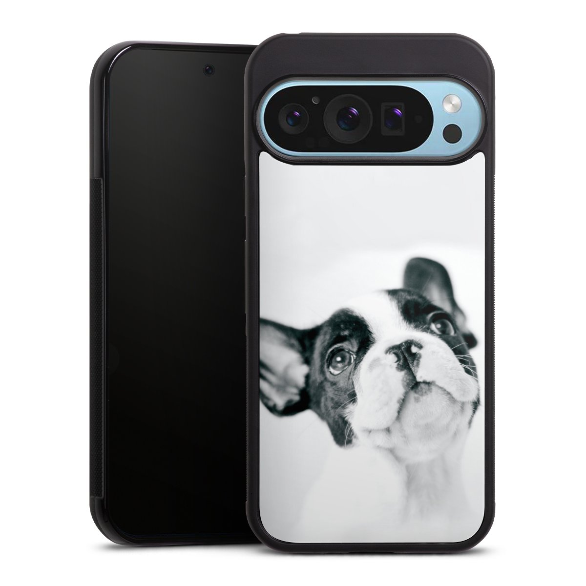 We print your design on the back of the glass inlay and then connect it firmly to the silicone case ,so that nothing sticks out and everything looks like it was cast from one piece. In addition, the sturdy glass element is protected from scratches by an additional coating and ensures a slight reflection on the shiny print image.
