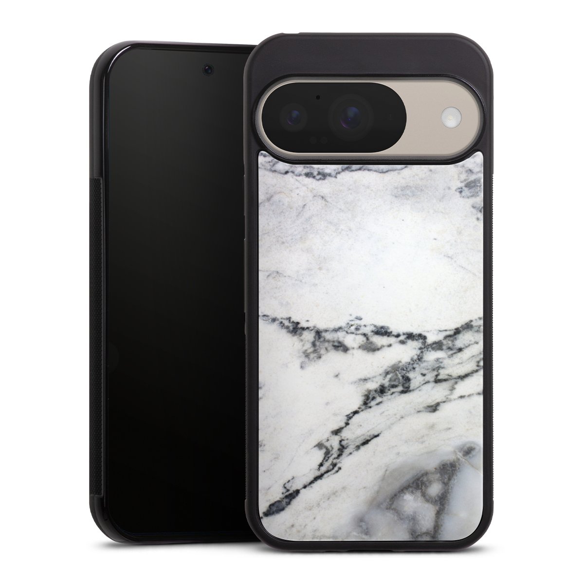 The contrast between the matte black TPU on the sides and the glossy glass surface not only makes the Gallery Case a fest for the eyes, but also a real treat for the hands: The glass gives the phone a pleasantly smooth back and the soft silicone edge provides the necessary grip.