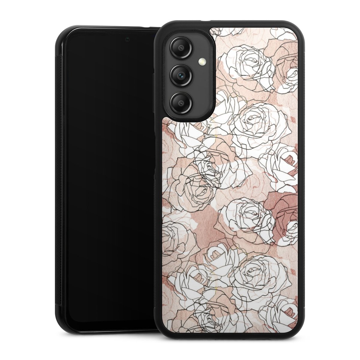 We print your design on the back of the glass inlay and then connect it firmly to the silicone case ,so that nothing sticks out and everything looks like it was cast from one piece. In addition, the sturdy glass element is protected from scratches by an additional coating and ensures a slight reflection on the shiny print image.