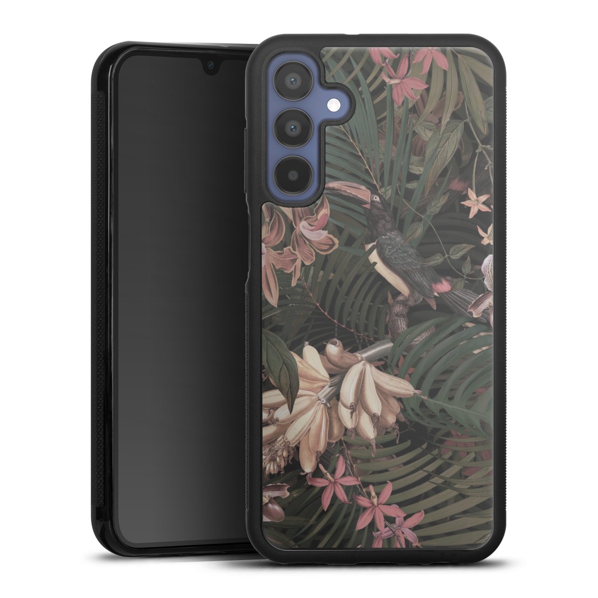 We print your design on the back of the glass inlay and then connect it firmly to the silicone case ,so that nothing sticks out and everything looks like it was cast from one piece. In addition, the sturdy glass element is protected from scratches by an additional coating and ensures a slight reflection on the shiny print image.