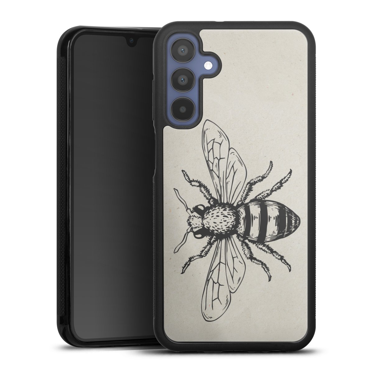 We print your design on the back of the glass inlay and then connect it firmly to the silicone case ,so that nothing sticks out and everything looks like it was cast from one piece. In addition, the sturdy glass element is protected from scratches by an additional coating and ensures a slight reflection on the shiny print image.