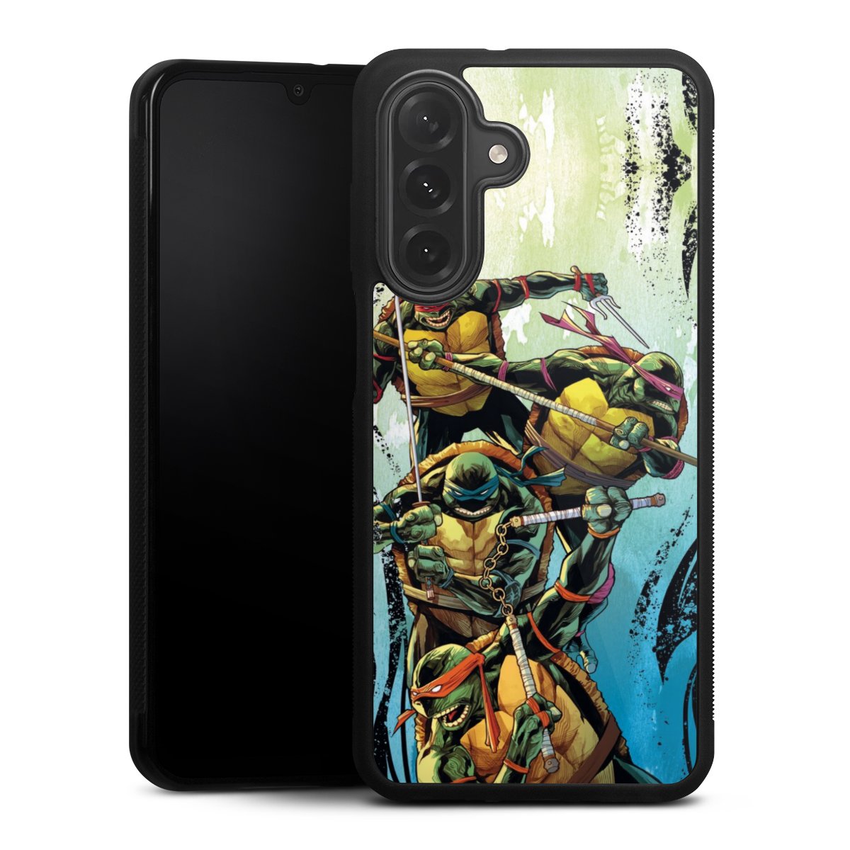 We print your design on the back of the glass inlay and then connect it firmly to the silicone case ,so that nothing sticks out and everything looks like it was cast from one piece. In addition, the sturdy glass element is protected from scratches by an additional coating and ensures a slight reflection on the shiny print image.