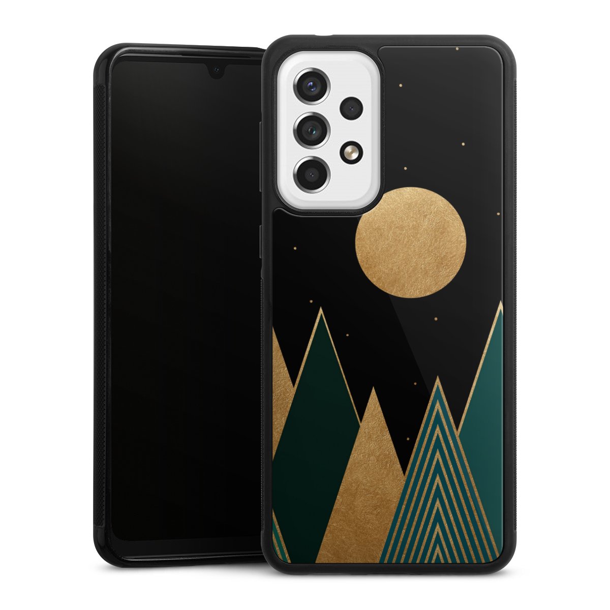 We print your design on the back of the glass inlay and then connect it firmly to the silicone case ,so that nothing sticks out and everything looks like it was cast from one piece. In addition, the sturdy glass element is protected from scratches by an additional coating and ensures a slight reflection on the shiny print image.