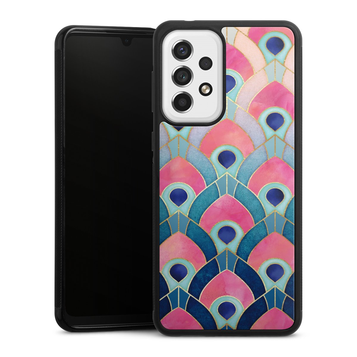 For this phone case, we use the solid direct printing process. The printing area covers the back of the glass plate, the edge of the case remains unprinted. The phone case can only be ordered fully printed. Choose for your design one of our exclusive designs or get creative and create your own design, for example with pictures and overlays. The choice is yours!