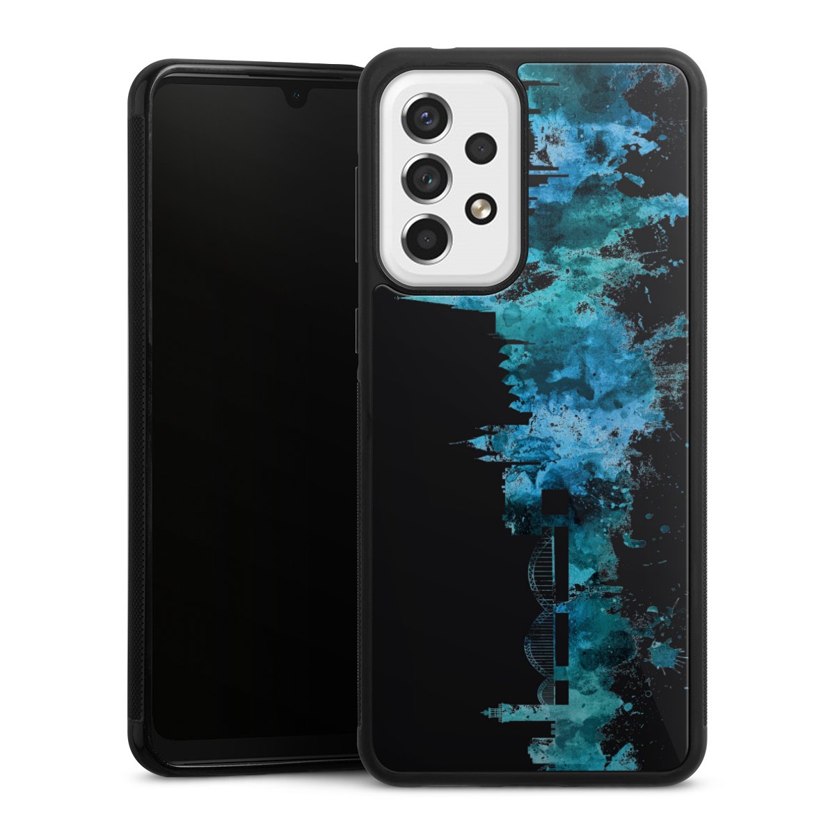We print your design on the back of the glass inlay and then connect it firmly to the silicone case ,so that nothing sticks out and everything looks like it was cast from one piece. In addition, the sturdy glass element is protected from scratches by an additional coating and ensures a slight reflection on the shiny print image.