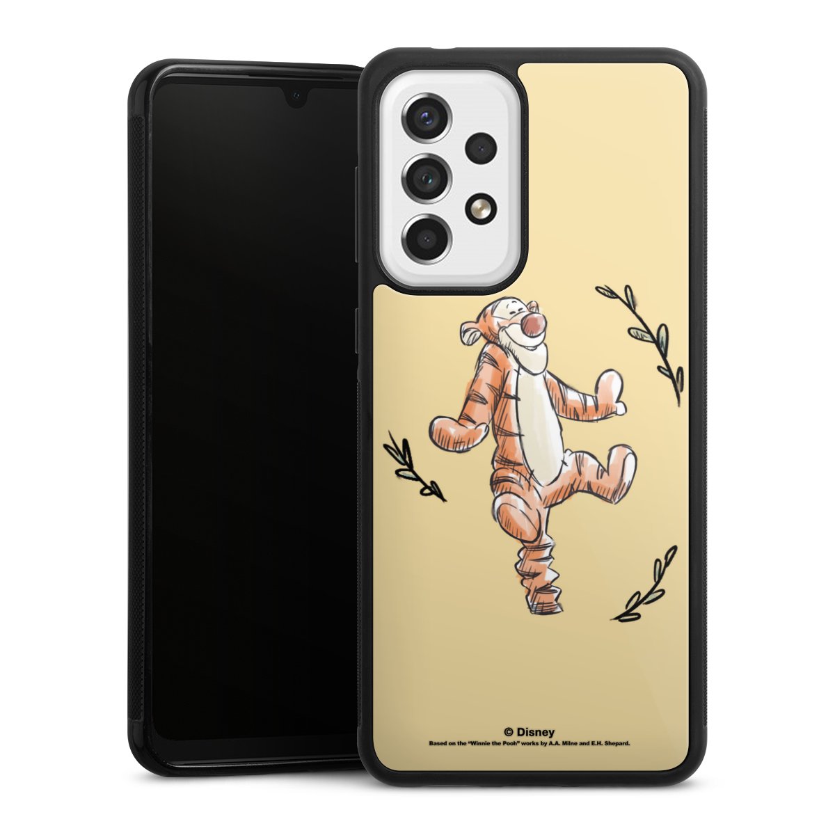 We print your design on the back of the glass inlay and then connect it firmly to the silicone case ,so that nothing sticks out and everything looks like it was cast from one piece. In addition, the sturdy glass element is protected from scratches by an additional coating and ensures a slight reflection on the shiny print image.