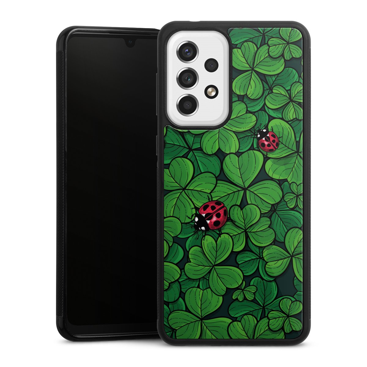 For this phone case, we use the solid direct printing process. The printing area covers the back of the glass plate, the edge of the case remains unprinted. The phone case can only be ordered fully printed. Choose for your design one of our exclusive designs or get creative and create your own design, for example with pictures and overlays. The choice is yours!