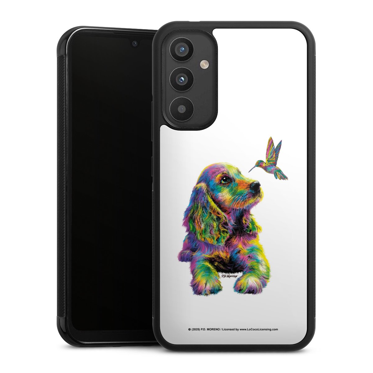 We print your design on the back of the glass inlay and then connect it firmly to the silicone case ,so that nothing sticks out and everything looks like it was cast from one piece. In addition, the sturdy glass element is protected from scratches by an additional coating and ensures a slight reflection on the shiny print image.