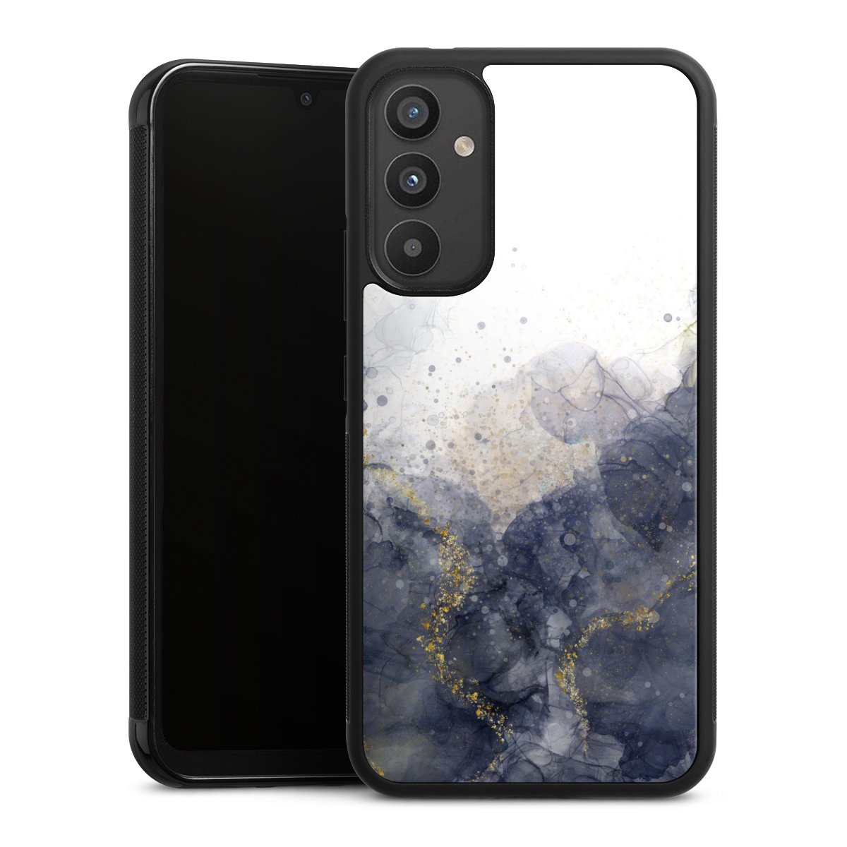 We print your design on the back of the glass inlay and then connect it firmly to the silicone case ,so that nothing sticks out and everything looks like it was cast from one piece. In addition, the sturdy glass element is protected from scratches by an additional coating and ensures a slight reflection on the shiny print image.