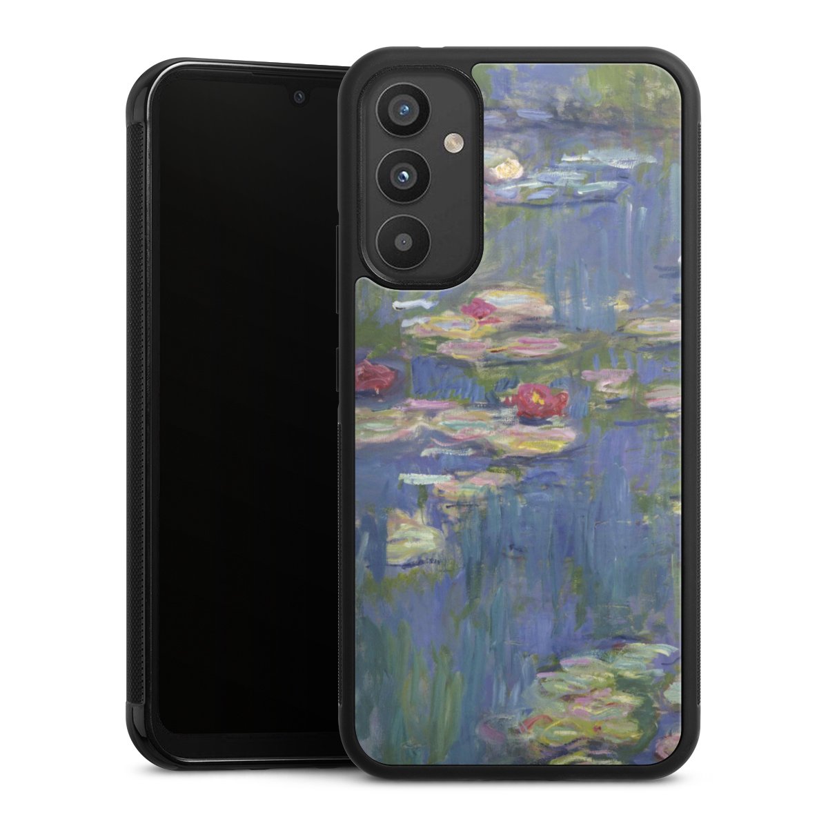 We print your design on the back of the glass inlay and then connect it firmly to the silicone case ,so that nothing sticks out and everything looks like it was cast from one piece. In addition, the sturdy glass element is protected from scratches by an additional coating and ensures a slight reflection on the shiny print image.