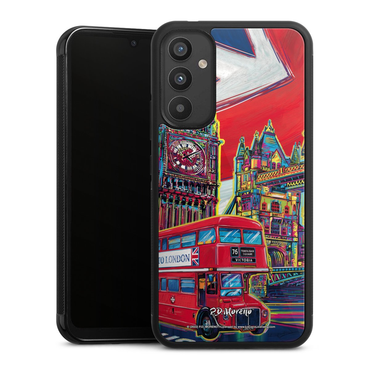 We print your design on the back of the glass inlay and then connect it firmly to the silicone case ,so that nothing sticks out and everything looks like it was cast from one piece. In addition, the sturdy glass element is protected from scratches by an additional coating and ensures a slight reflection on the shiny print image.