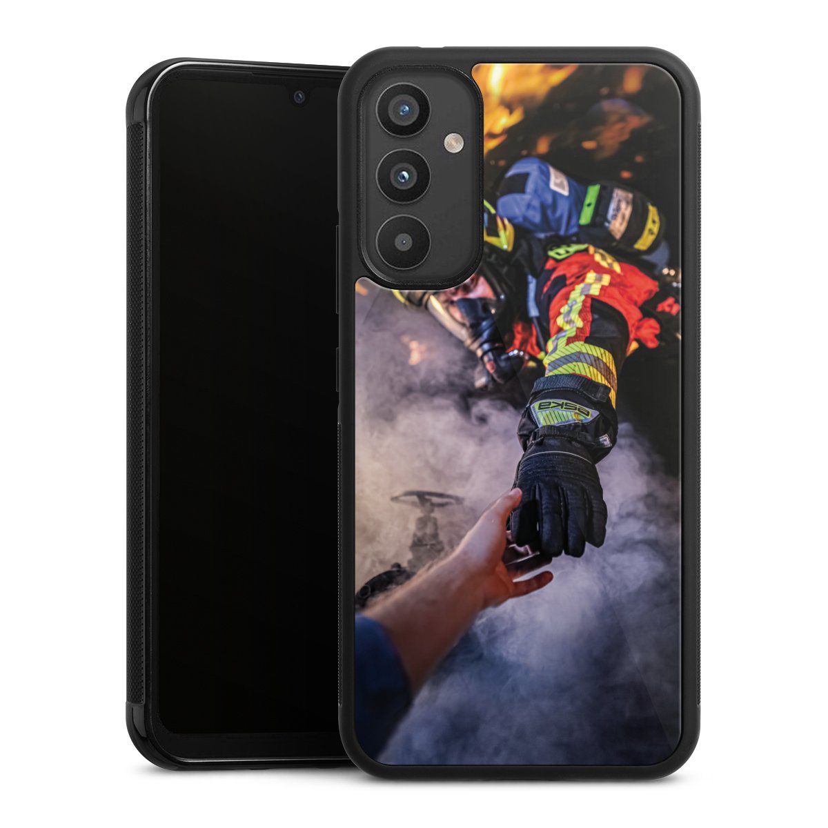 Firefighter Reaches for Hand