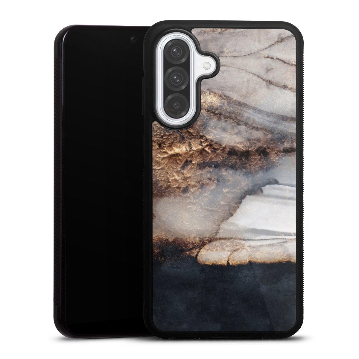 The contrast between the matte black TPU on the sides and the glossy glass surface not only makes the Gallery Case a fest for the eyes, but also a real treat for the hands: The glass gives the phone a pleasantly smooth back and the soft silicone edge provides the necessary grip.